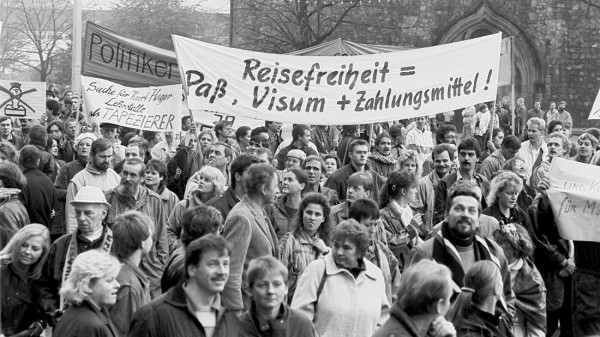 <사진> “여행의 자유” 구호를 들고 행진하는 동독 주민들. ⓒ 사진제공 dpa-Bildarchiv