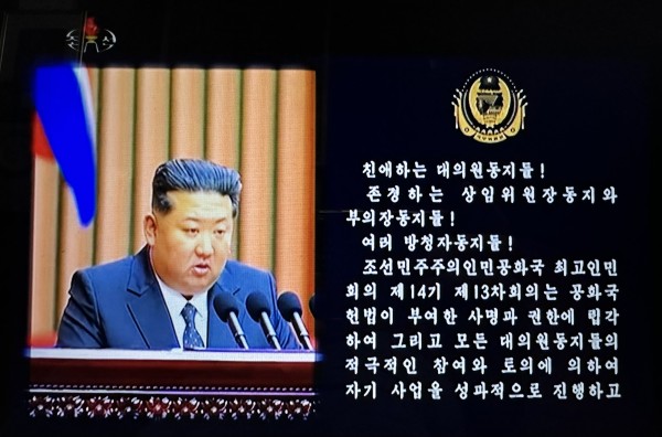 <사진> 지난 9월 22일 조선중앙TV가 방송한 김정은의 최고인민회의 연설 장면. ⓒ 조선중앙TV캡쳐
