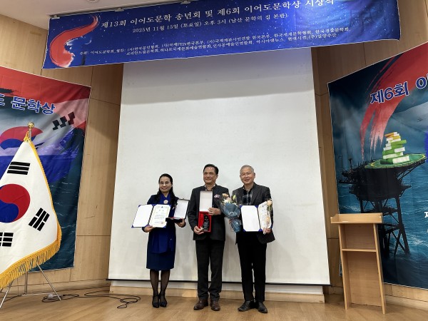 강병철 대외협력부원장·양금희 문화예술부원장 이어도문학회 특별상 수장 (문학의 집, 2025.11.15)
