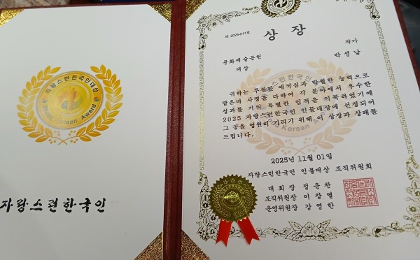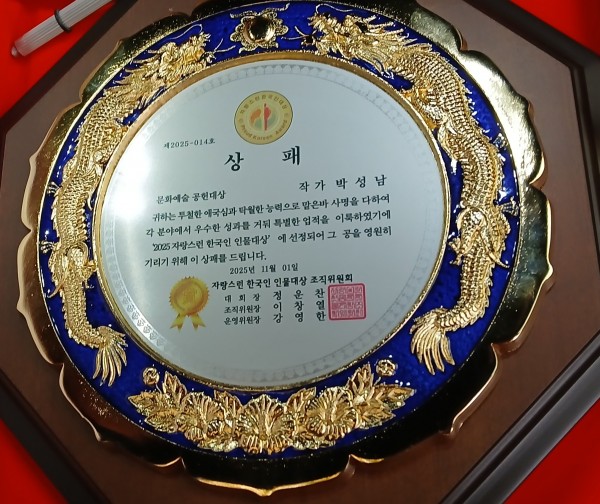 박성남 연구원 고문(박수근 화백 장남) "2025년도 자랑스런 한국인 인물대상" 수상 (2025.11.01)