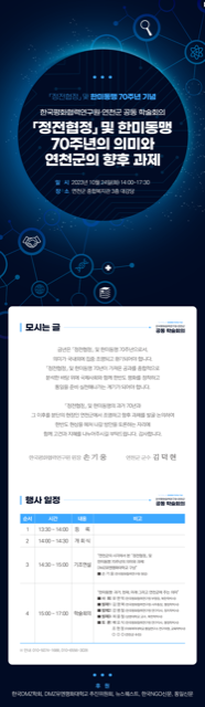 “「정전협정」 및 한미동맹 70주년의 의미와 연천군의 향후 과제” (2023년 10월 24일(화) 14:00~17:30, 연천군 종합복지관 3층 대강당)